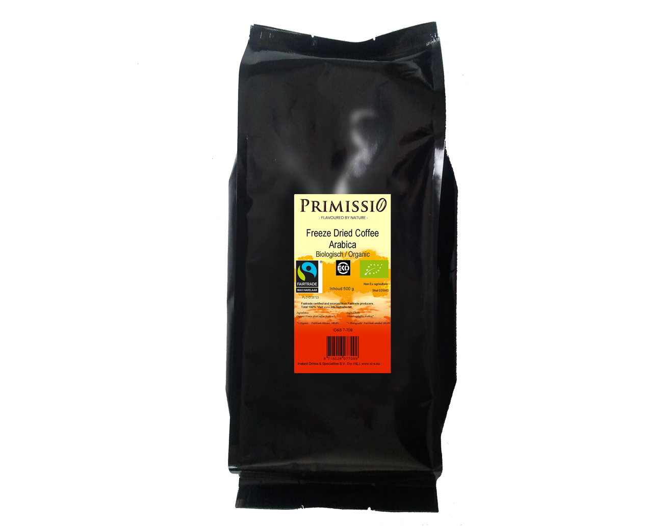 Primissio Biologische Fairtrade Coffee Freeze Dried Decafé. Een milde Arabica coffee zonder Cafeïne. Voor een (h)eerlijke Coffee , Espresso of Cappuccino.